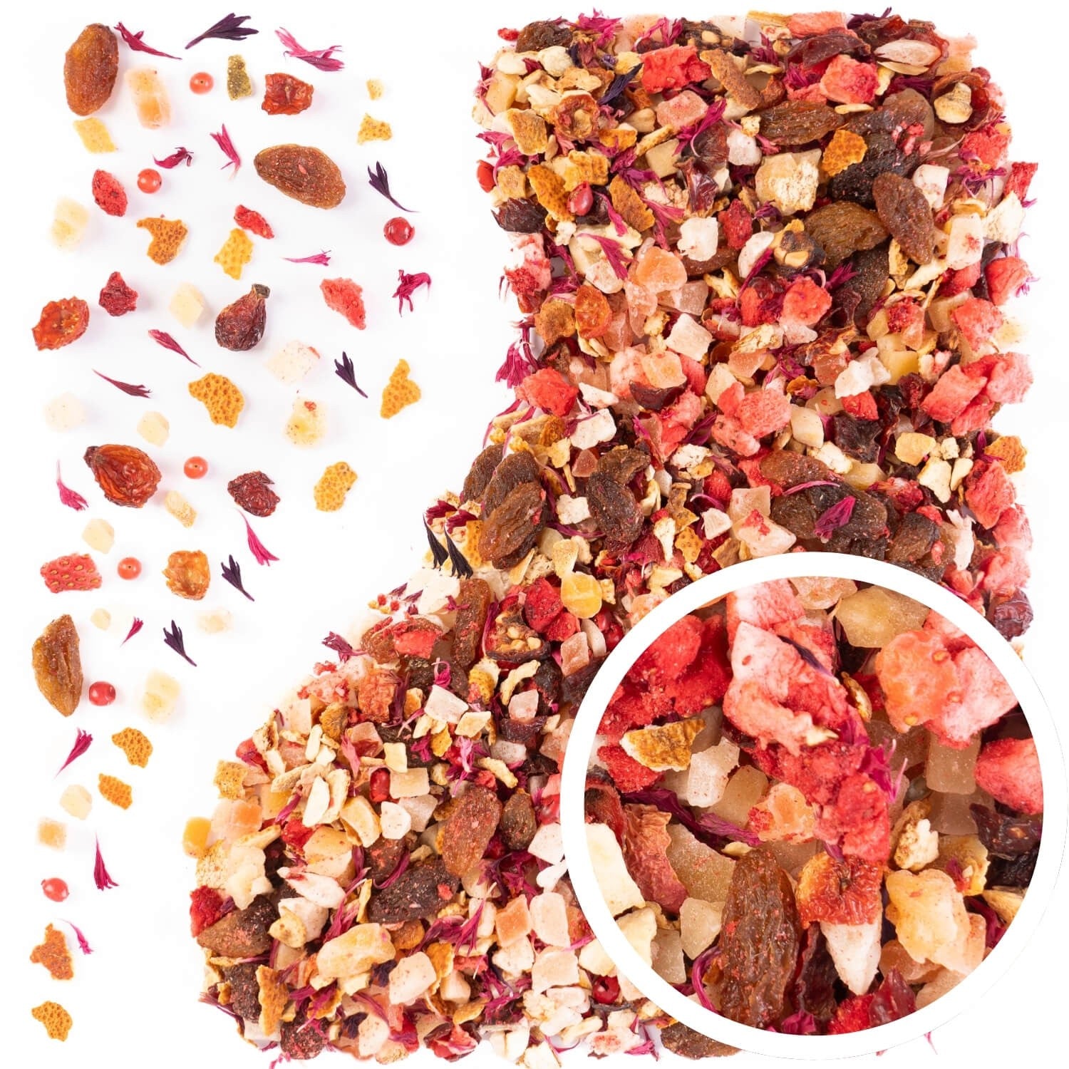 Bubble Bliss to nowoczesna i nieoczywista herbata owocowa sypana, która zaskakuje połączeniem słodyczy i pikantnej nuty. To doskonała propozycja dla miłośników herbat owocowych na bazie rodzynek, którzy szukają nowych, inspirujących smaków.